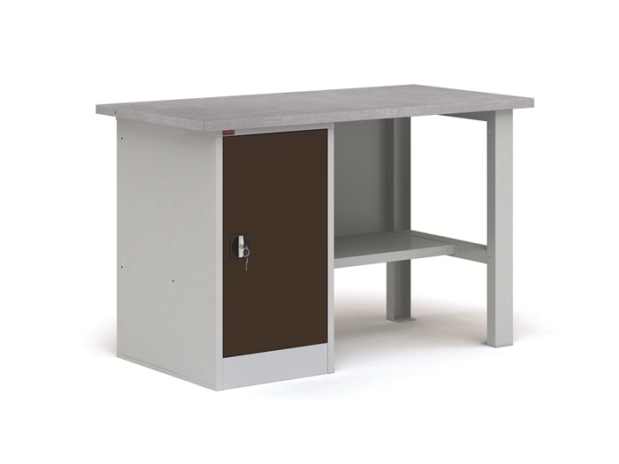 Металлические слесарный верстак ВП-2/1,6 черный представляет собой рабочий стол для ручной обработки металлических, деревянных изделий, а также предметов, выполненных из других материалов. Металлический верстак используется в мастерских, гаражах, автосервисах и в других рабочих зонах. Он являются основой, как небольшого промышленного производства, так и крупного предприятия. Допустимая равномерно распределенная нагрузка на верстак - 1000 кг, на полку верстачную - 40 кг, на полку тумбы- 30 кг. В комплект верстака ВП-2/1,6 черный входит: столешница СТ-1,6 из МДФ, покрытая оцинкованным листовым металлом, комплект К-2/1,6 (стенка задняя металлическая, металлическая верстачная опора), тумба Т-1 с двумя съемными полками. Дверь тумбы закрывается ключевым замком. Тумбу можно установить как с левой, так и правой стороны верстака. Дополнительно на верстак можно установить два перфорированных экрана соответствующего размера, аксессуары на экран. Цвет: верстак - серый Ral 7035, дверь тумбы - черный муар Ral 7021. Гарантия 1 год. Срок службы 10 лет