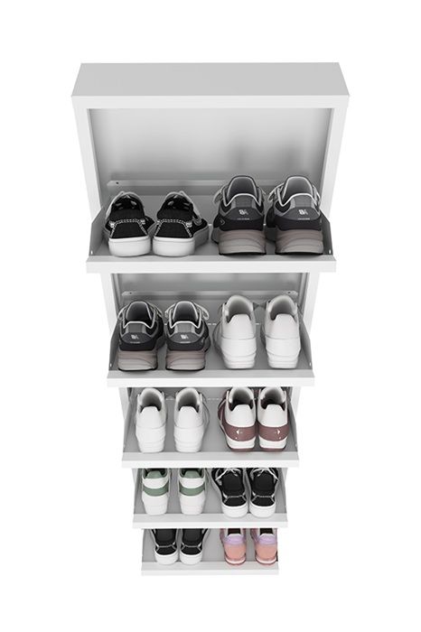 Обувница Практик ОМ-5 белая предназначена для хранения обуви. Обувница состоит из пяти отделений, каждое отделение вмещает 2 пары обуви (до 43 размера). Изготовлена из стали, поставляется в собранном виде. Цвет: белый Ral 9003. Тип покрытия: порошковое